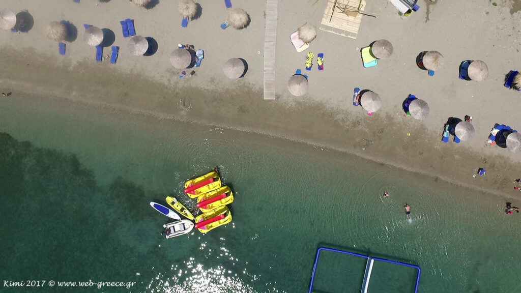 Στην Κύμη θα βρείτε πολλές θαυμάσιες αμμουδιές όπου μπορείτε να απολαύσετε το μπάνιο σας. Μερικές από αυτές είναι η παραλία της Κύμης και το Σοτσίνι με τις απότομες βραχοσπηλιές που προσφέρονται για υποβρύχιο ψάρεμα καθώς και η παραλία Στόμιο. Άλλες παραλίες που μπορείτε να επισκεφθείτε είναι η παραλία Πλατάνα με το ψιλό βότσαλο, οι απέραντες αμμουδιές του Άη Γιώργη και Μουρτέρη, οι κόλποι Τσίλαρο και Θαψά με το ψιλό βότσαλο και η παραλία Μετοχίου. Πεντακάθαρες αμμουδιές με διαυγή νερά όπου μπορείτε να απολαύσετε και κάποιο από τα αγαπημένα σας θαλάσσια σπορ.