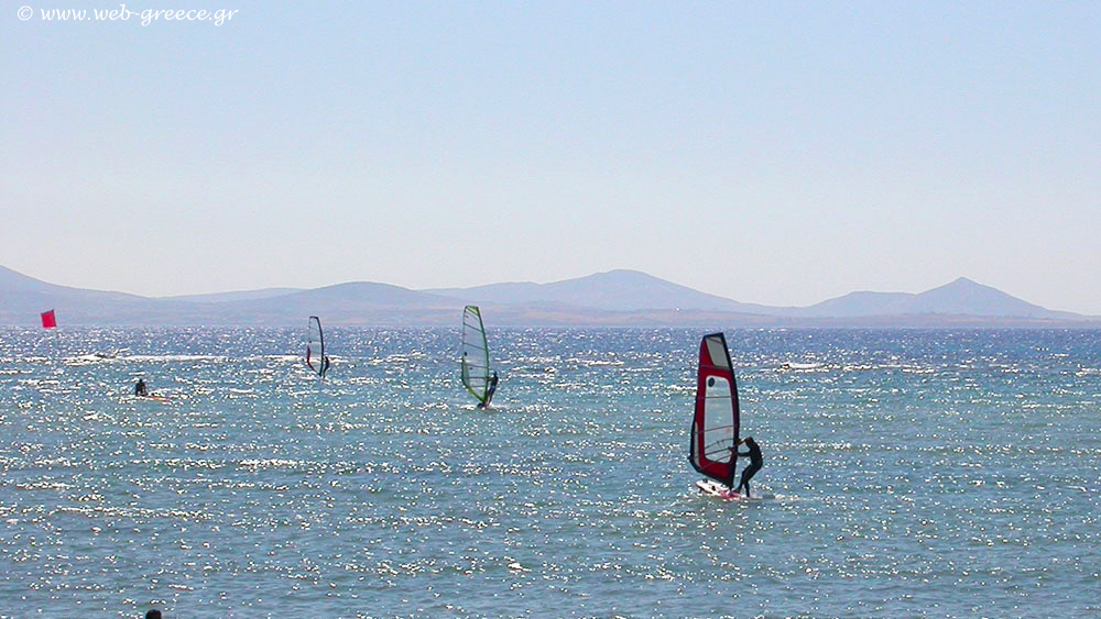 Η δυτική πλευρά του νησιού συγκεντρώνει τις περισσότερες και πιο οργανωμένες παραλίες. Μεταξύ αυτών είναι ο Άγιος Γεώργιος, κοντά στη Χώρα, καθώς και ο Άγιος Προκόπιος, η Αγία Άννα και η Πλάκα, που χαρακτηρίζονται από αμμώδη ακτογραμμή και ρηχά νερά. Στη νοτιοδυτική πλευρά βρίσκονται επίσης παραλίες όπως η Μικρή Βίγλα και το Καστράκι.