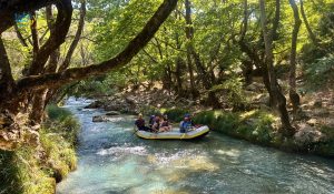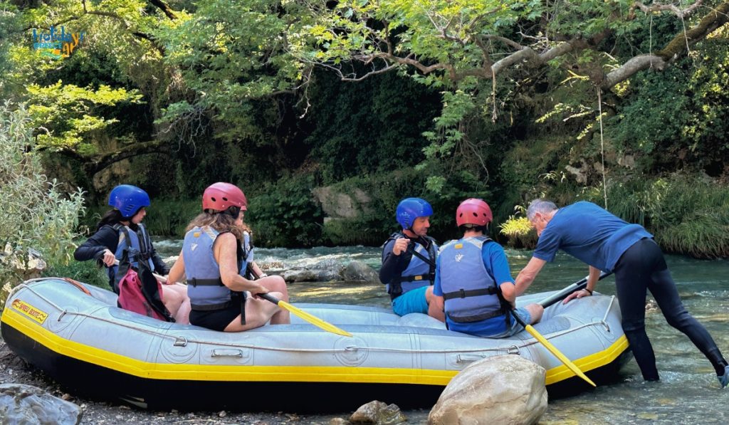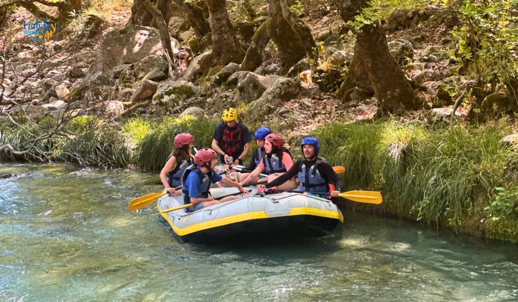 Η διαδρομή του ράφτινγκ απευθύνεται τόσο σε αρχάριους όσο και σε πιο έμπειρους, με ήπια ρεύματα και λίγα σημεία αυξημένης δυσκολίας που κάνουν την εμπειρία διασκεδαστική ενώ παραμένει ασφαλής.